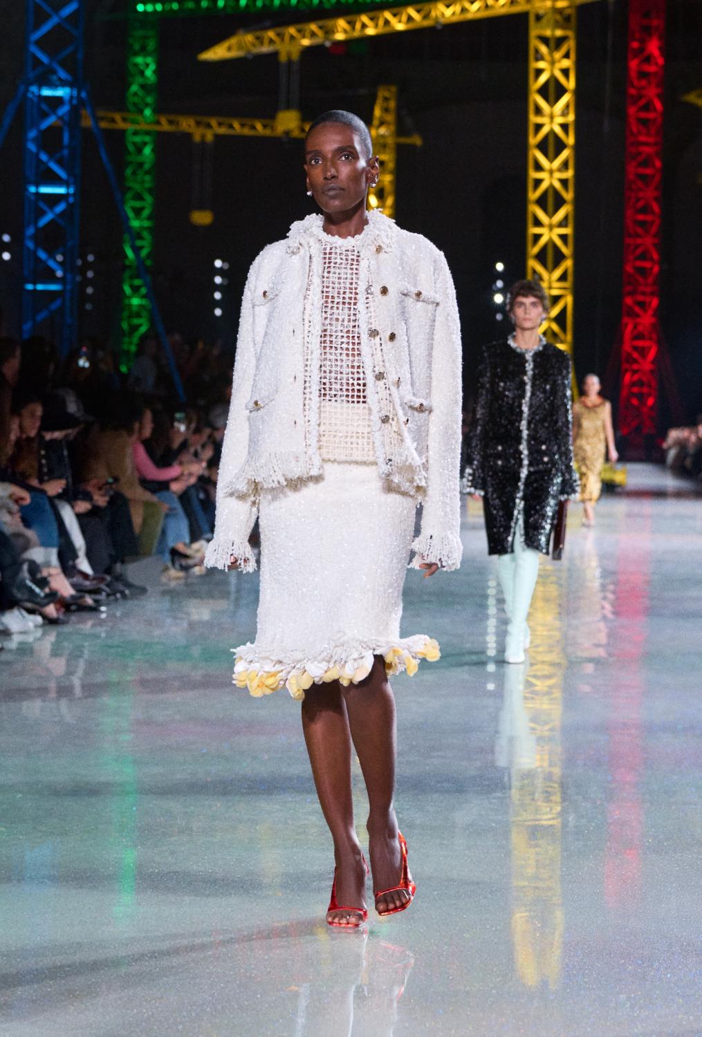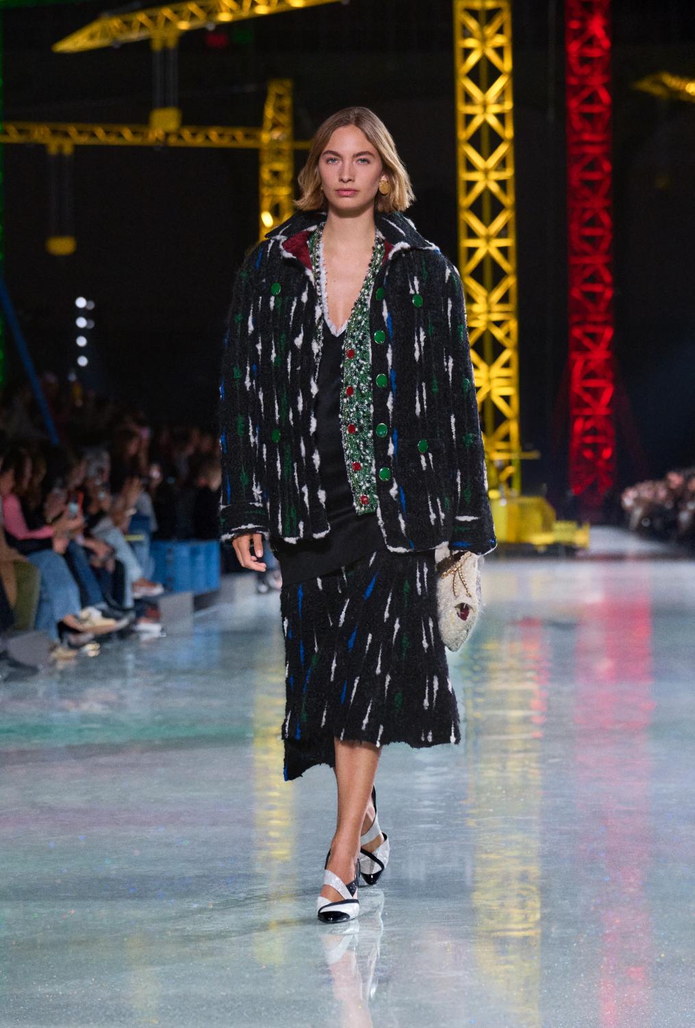 The natural world metamorphosed is part of the essence of Chanel: from Gabrielle Chanel’s love of simplicity and intricacy of natural colours and materials, together with an essentialism in cut. To the hypernatural, iridescent extravagance of display, embellishment, fancy and flight. Both are touchstones, as are the women who sport such clothing in unapologetic self-expression.