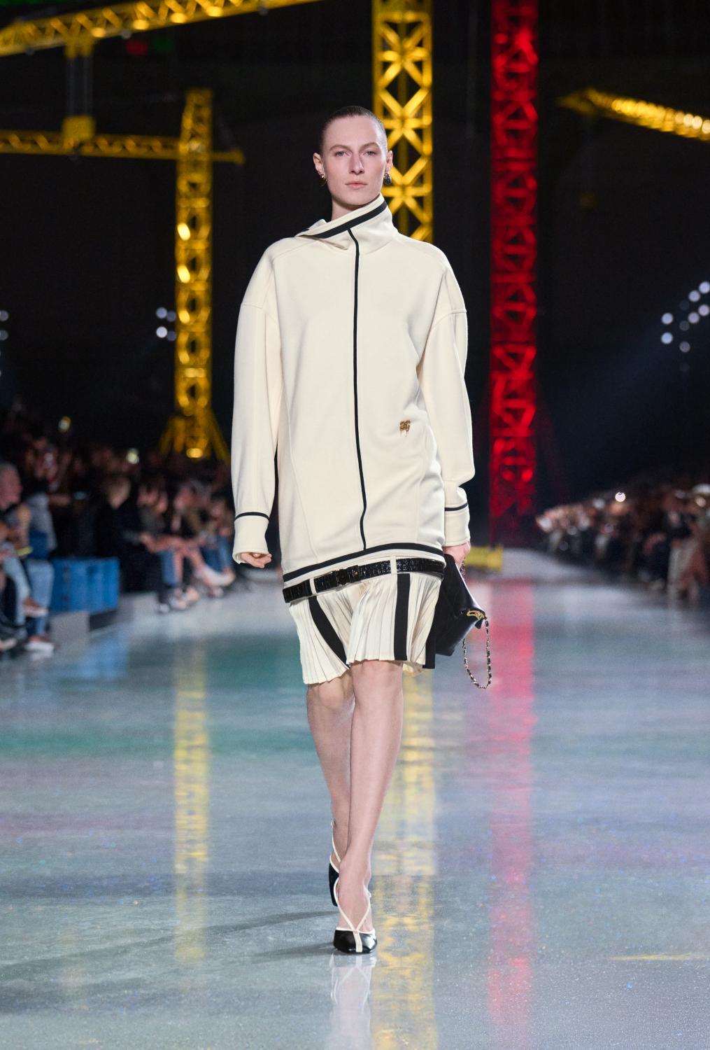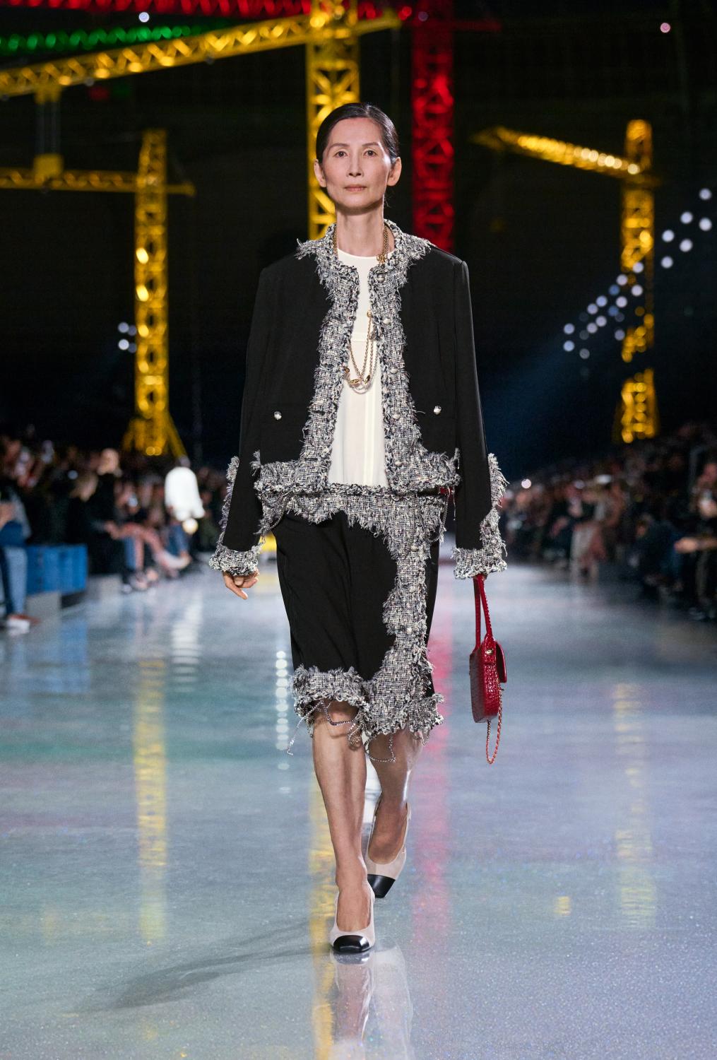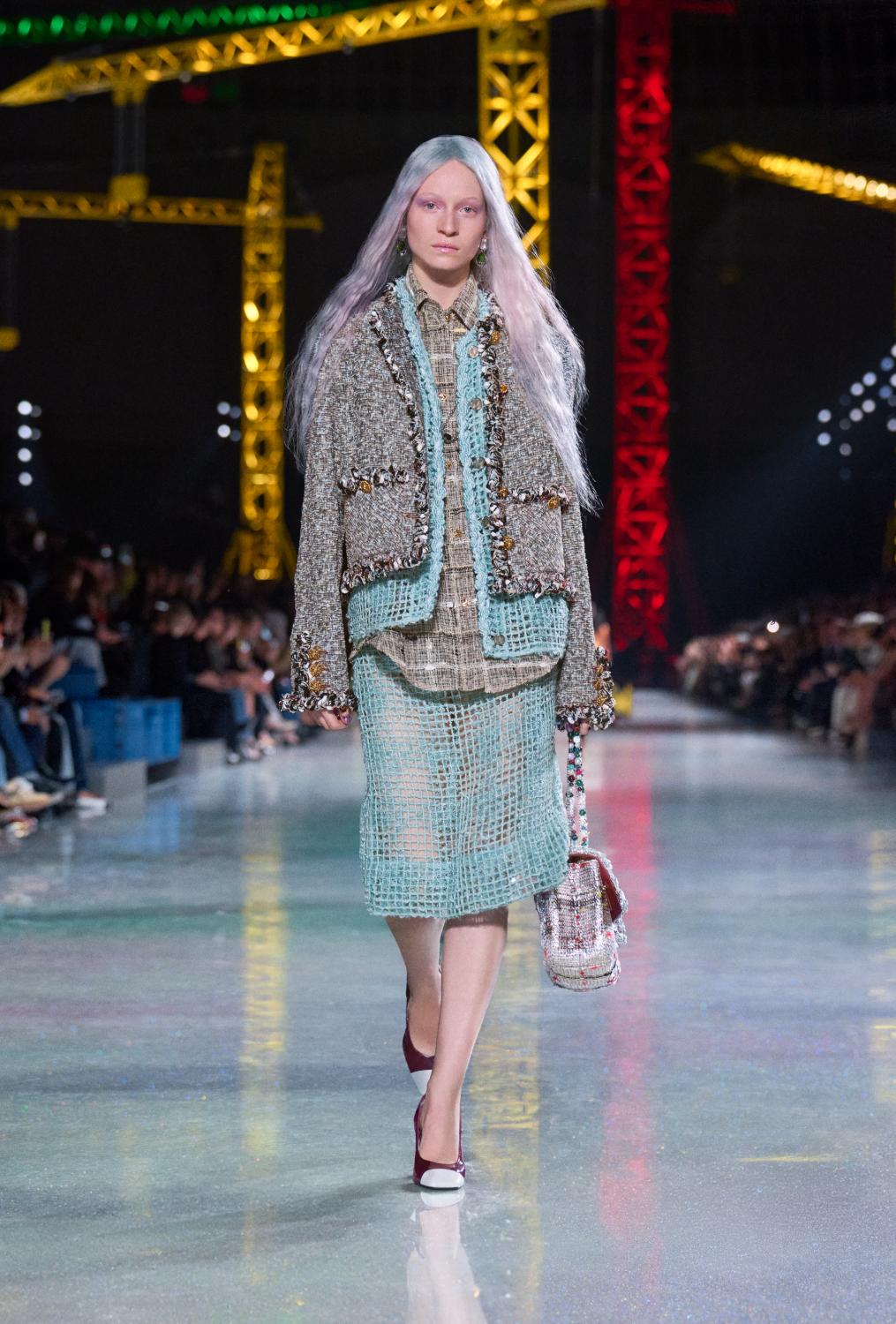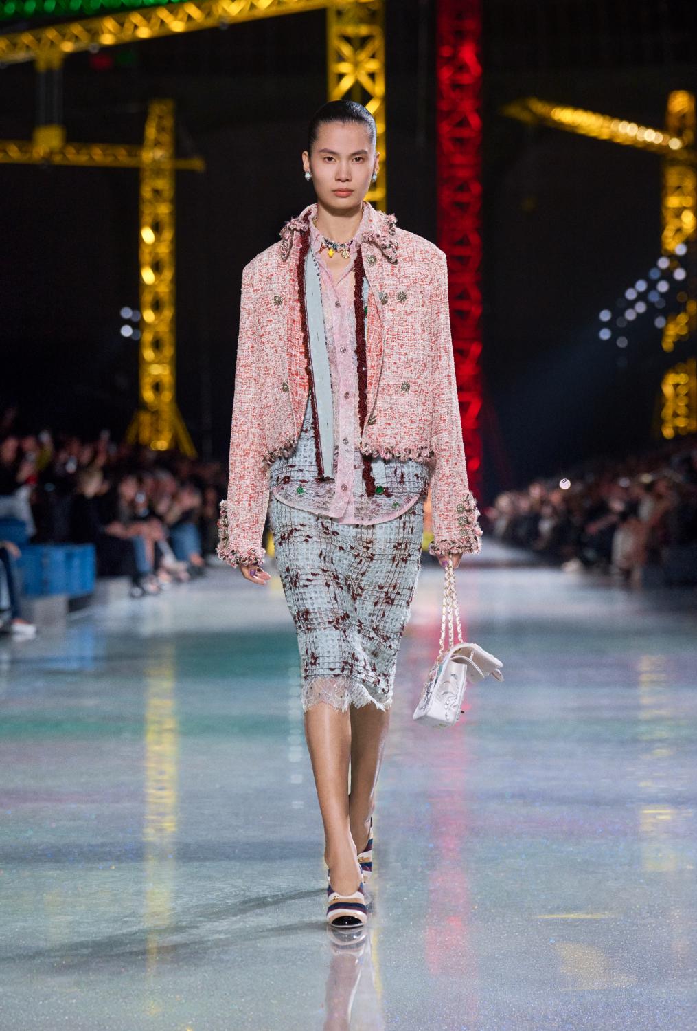 The collection moves through time, with a stratification of silhouettes; layered yet lithe, untucked and insouciant, from the twenties to the thirties, the fifties to the sixties, to the twenties once more – where we are today. Central to these temporal shifts is the archetype of the Chanel suit.